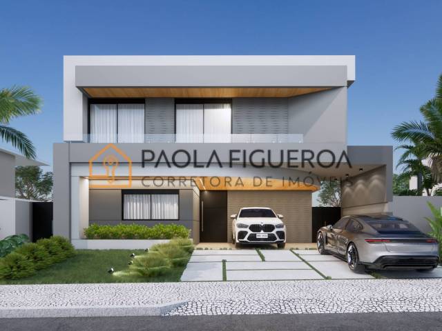 Casa sobrado com 5 suítes, sendo 1 no térreo (home theater reversível) Ampla suíte máster com closet, banheira, sacada, sala íntima no andar superior, rouparia. Sala 2 ambientes, lavabo, cozinha integrada, despensa, área de serviço.
